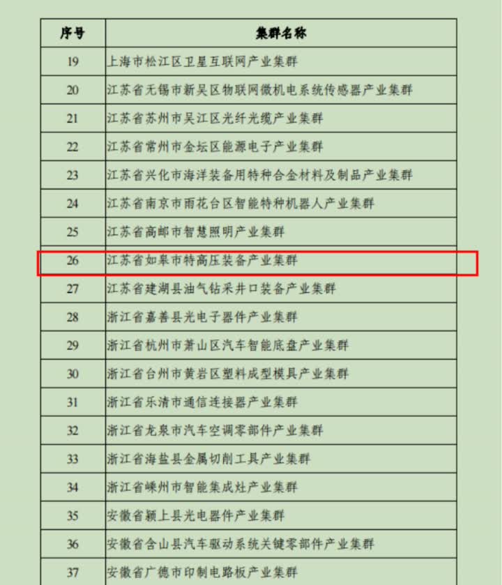 特高压装备产业是如皋市特色产业,经过十多年的发展,产业规模逐步壮大,优势企业逐步成群。以如皋经济技术开发区为重要发展载体,涵盖“开关设备、电流/电压互感器、复合绝缘子、输电线路/电力金具”等特高压装备全系列产品的生产、供应与服务,先后获批“国家火炬如皋输变电装备特色产业基地”“国家级输变电特高压电力设备生产基地”“江苏省如皋特高压输变电装备科技产业园”等荣誉称号。