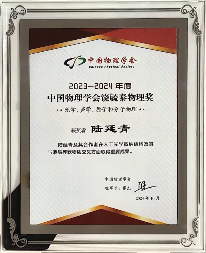 10月11日,由中国物理学会主办、海南大学承办的中国物理学会2024秋季学术会议在海南国际会展中心开幕,如皋中学杰出校友、南京大学现代工程与应用科学学院的陆延青教授,凭借其在光学、声学、原子和分子物理领域的卓越贡献,荣获了2023-2024年度中国物理学会饶毓泰物理奖,为如皋中学再添荣耀篇章。